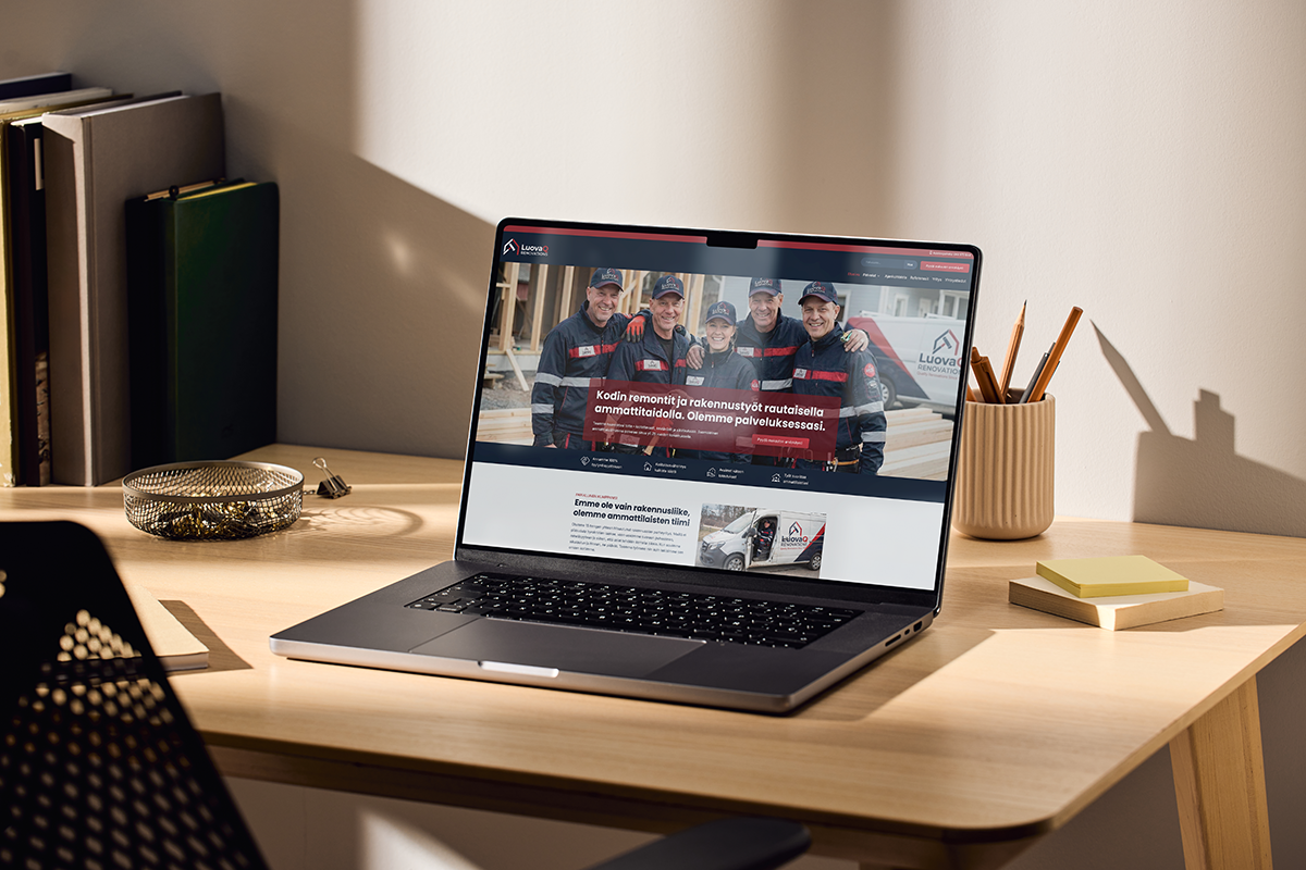 Tiedämme, että rakennusalalla työnjälki puhuu puolestaan. Siksi emme vain puhu hyvistä verkkosivuista, vaan teimme sellaisen valmiiksi. Olemme suunnitelleet rakennus- ja remonttialan yrityksille optimoidun LuovaQ Business -mallisivuston, joka on rakennettu keräämään liidejä ja vakuuttamaan asiakkaasi.